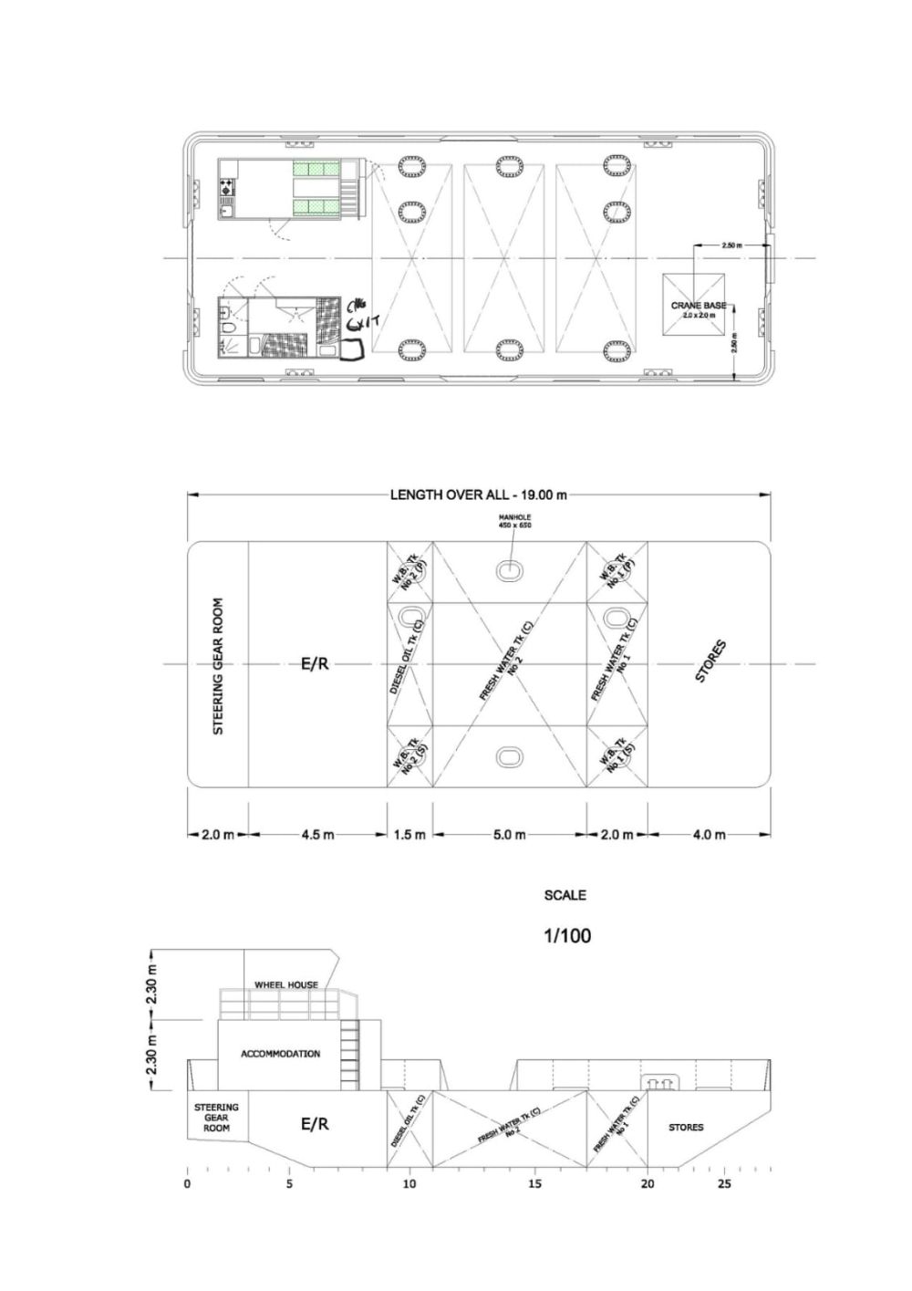 Cabin for crew 2 persons plus master on bridge