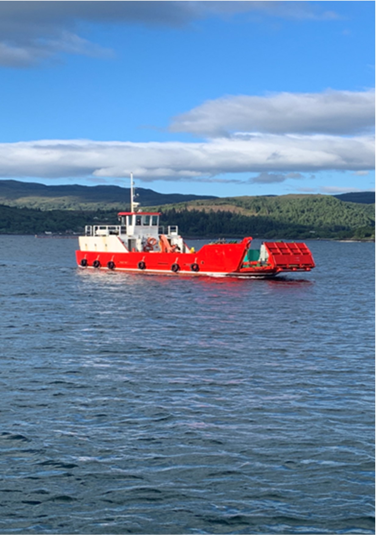 Roll on Roll off car ferry, Aquaculture assistance, dive platform, guard duty, cargo transfer, construction equipment and materials delivery, crane barge, anchor handling, civil support